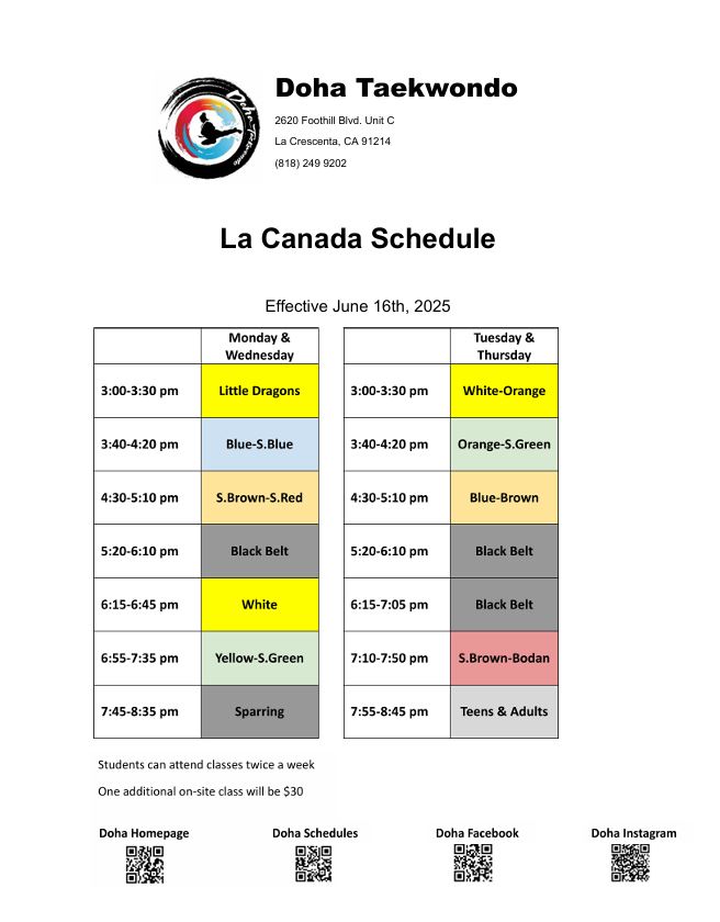 *Twice a week  * Higher belts may attend belt classes *Sparring Class must have own sparring gear